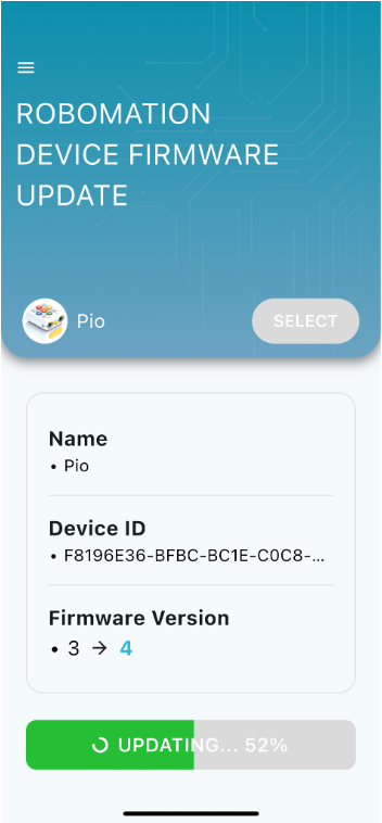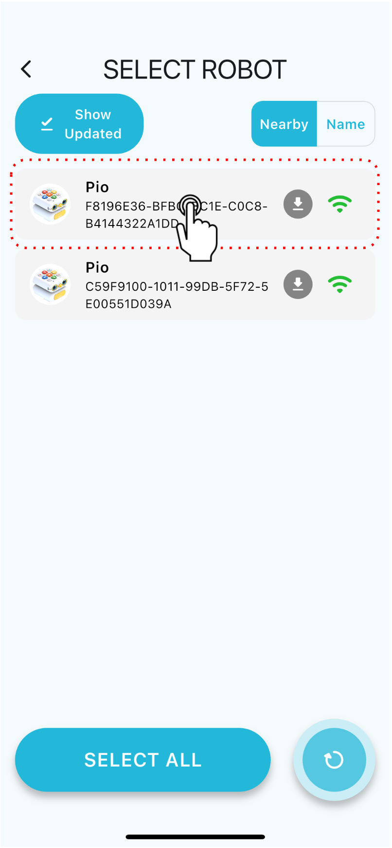 2. On the ‘SELECT ROBOT’ screen, select the robot you want to update.