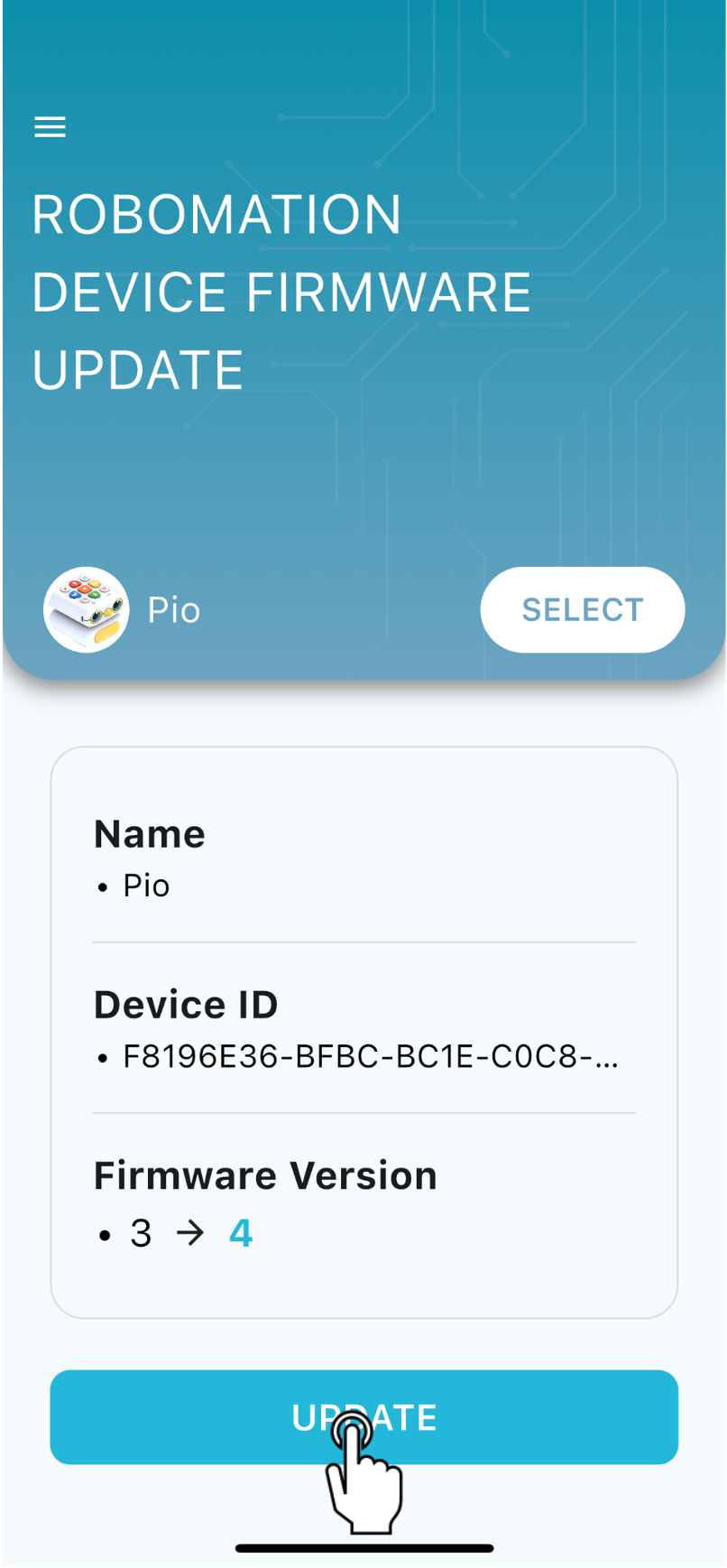 3. Check the information of the robot you want to update, then tap the ‘UPDATE’ button.