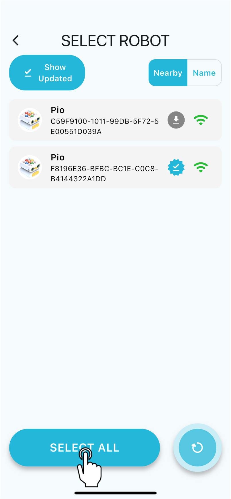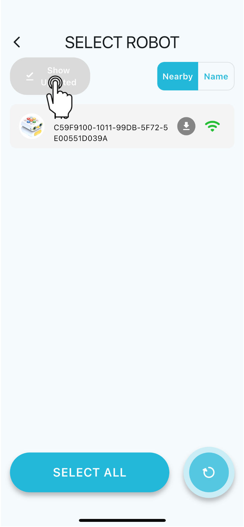 7. When you tap the ‘SELECT ALL’ button, all the robots that require update will be selected.
