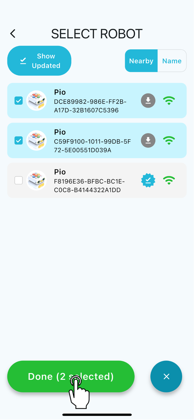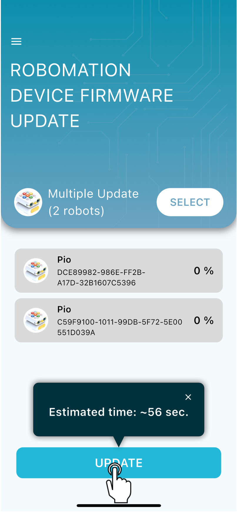 9. Check the information of the robots you want to update, then tap the ‘UPDATE’ button.