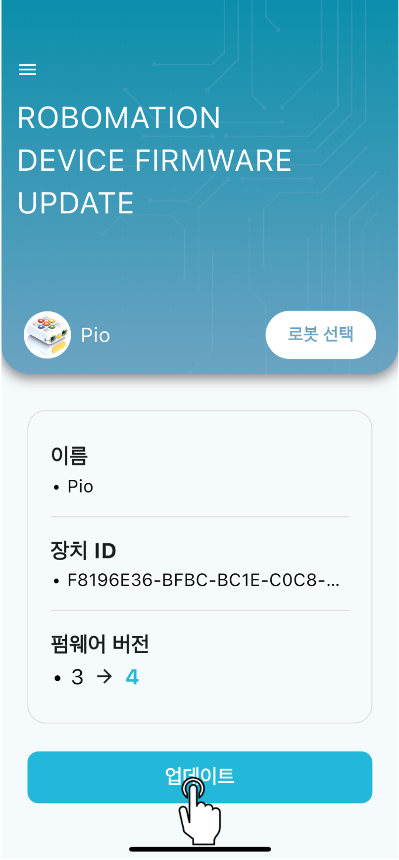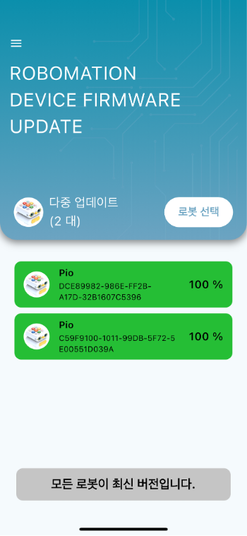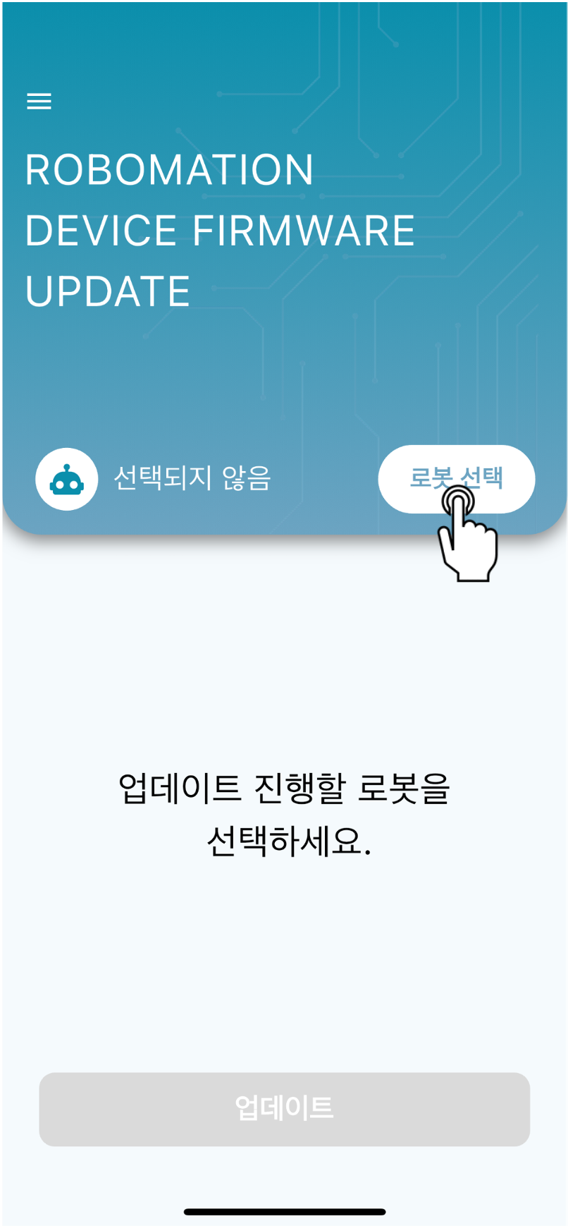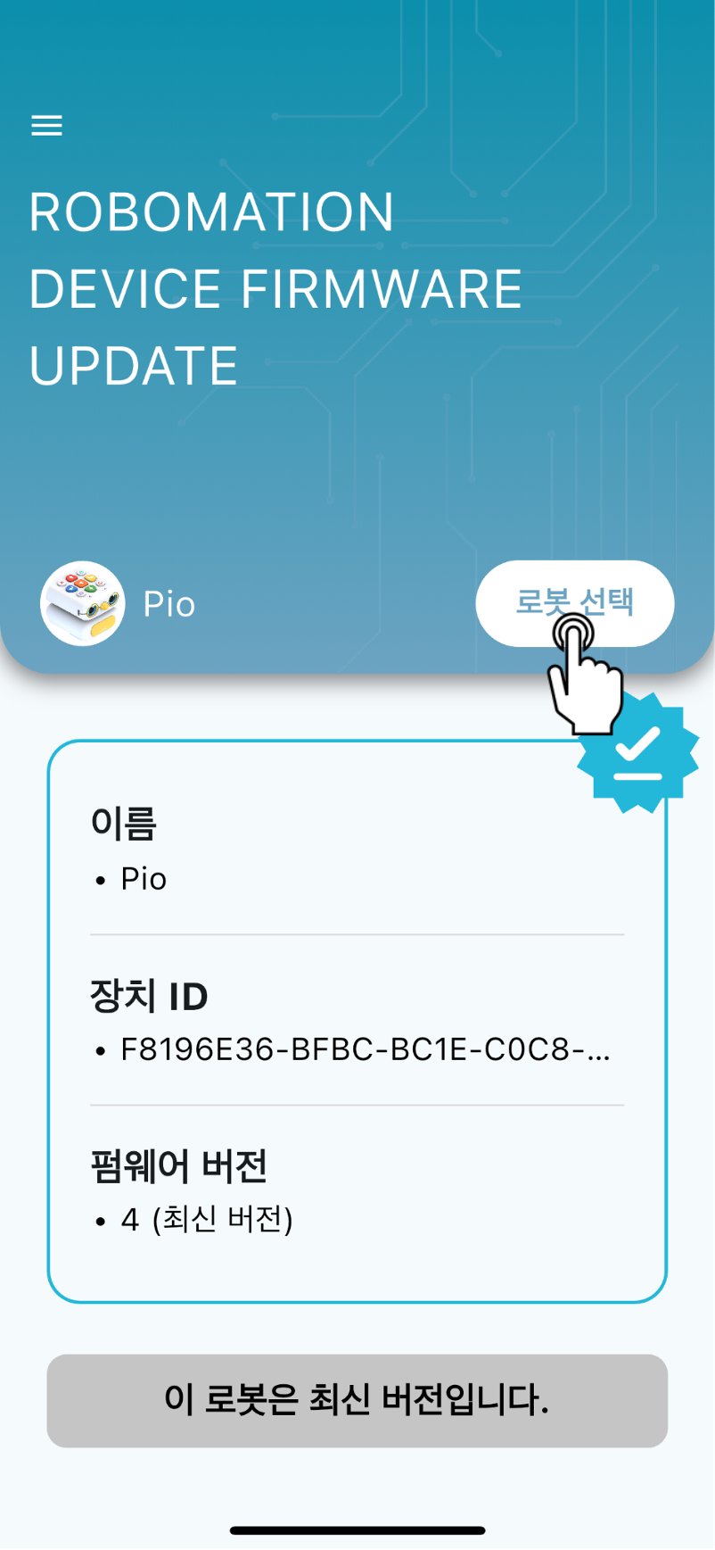 다른 로봇을 업데이트하려면, 다시 ‘로봇 선택’ 버튼을 터치합니다.