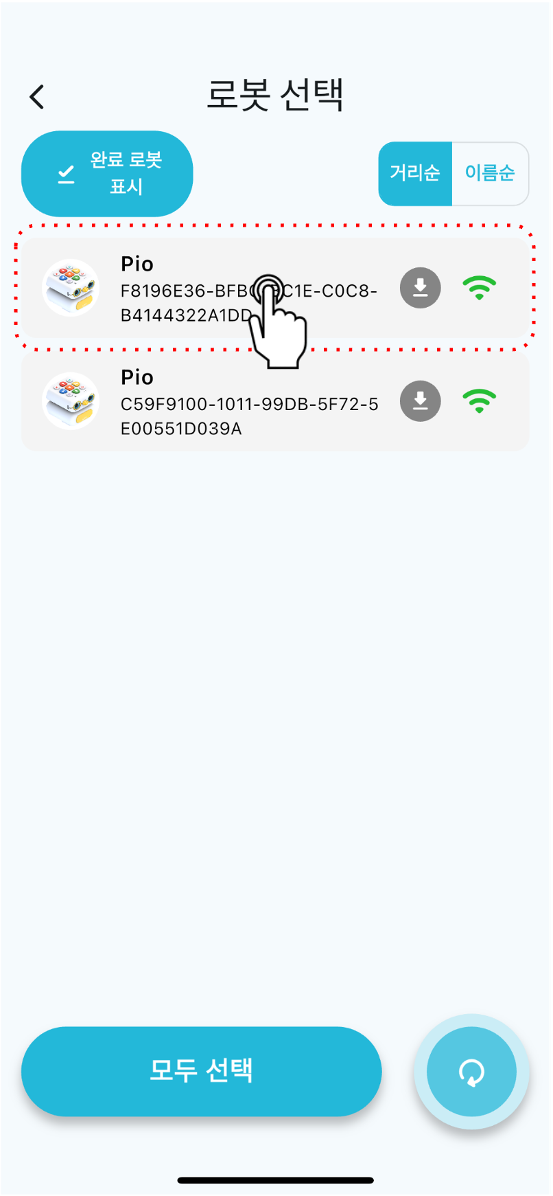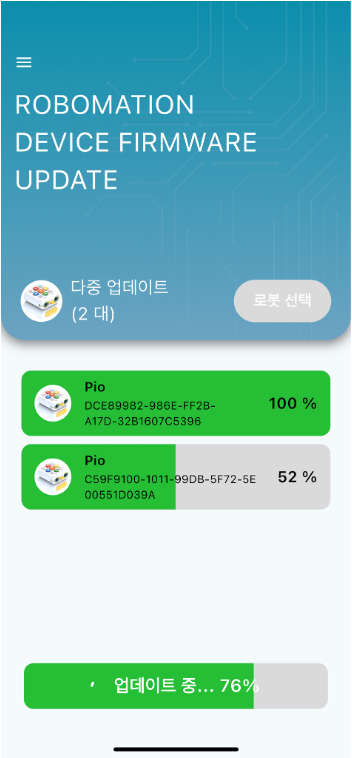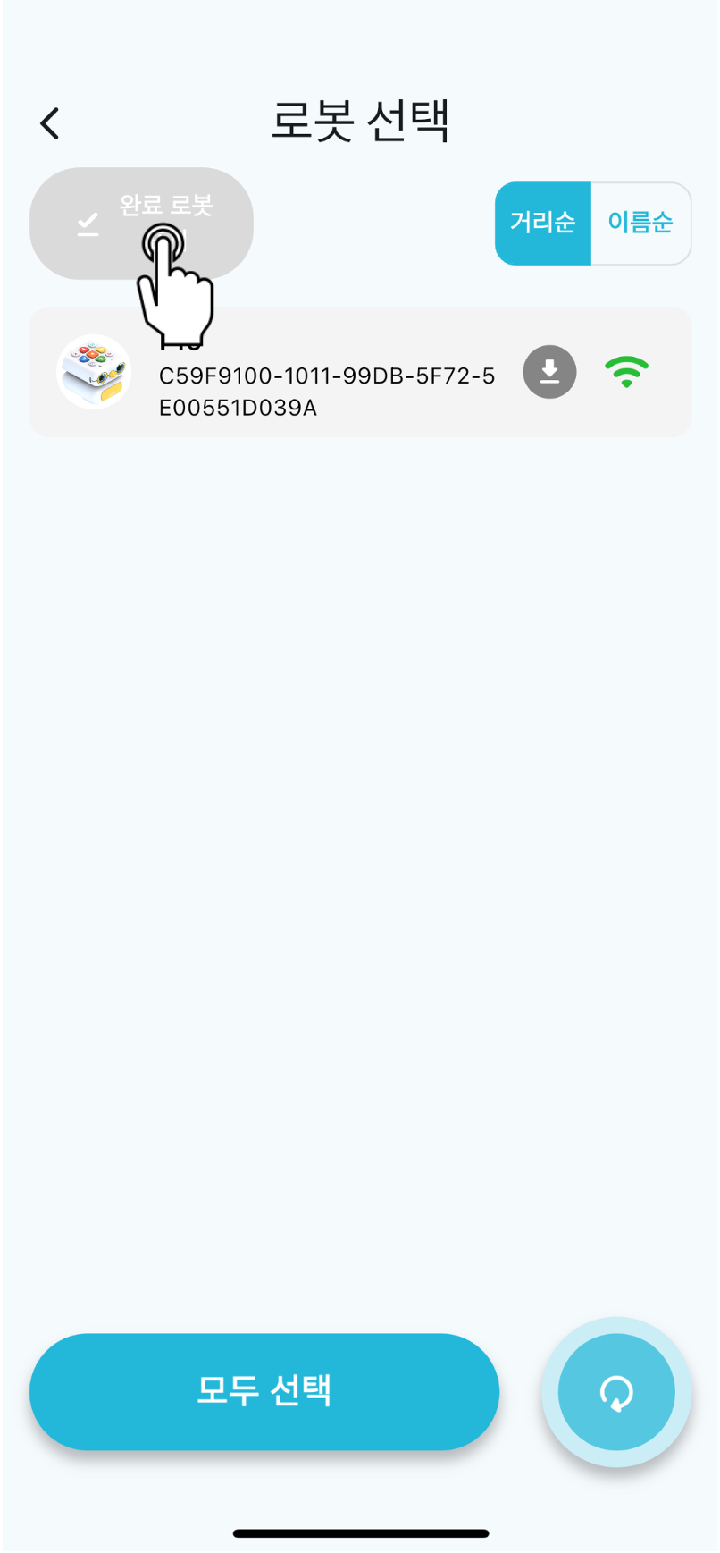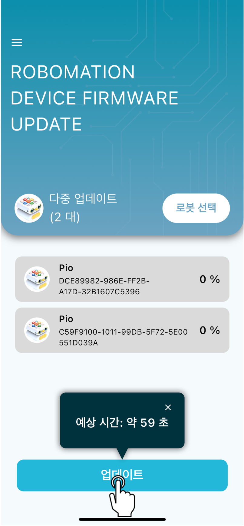 다른 로봇을 업데이트하려면, 다시 ‘로봇 선택’ 버튼을 터치합니다.